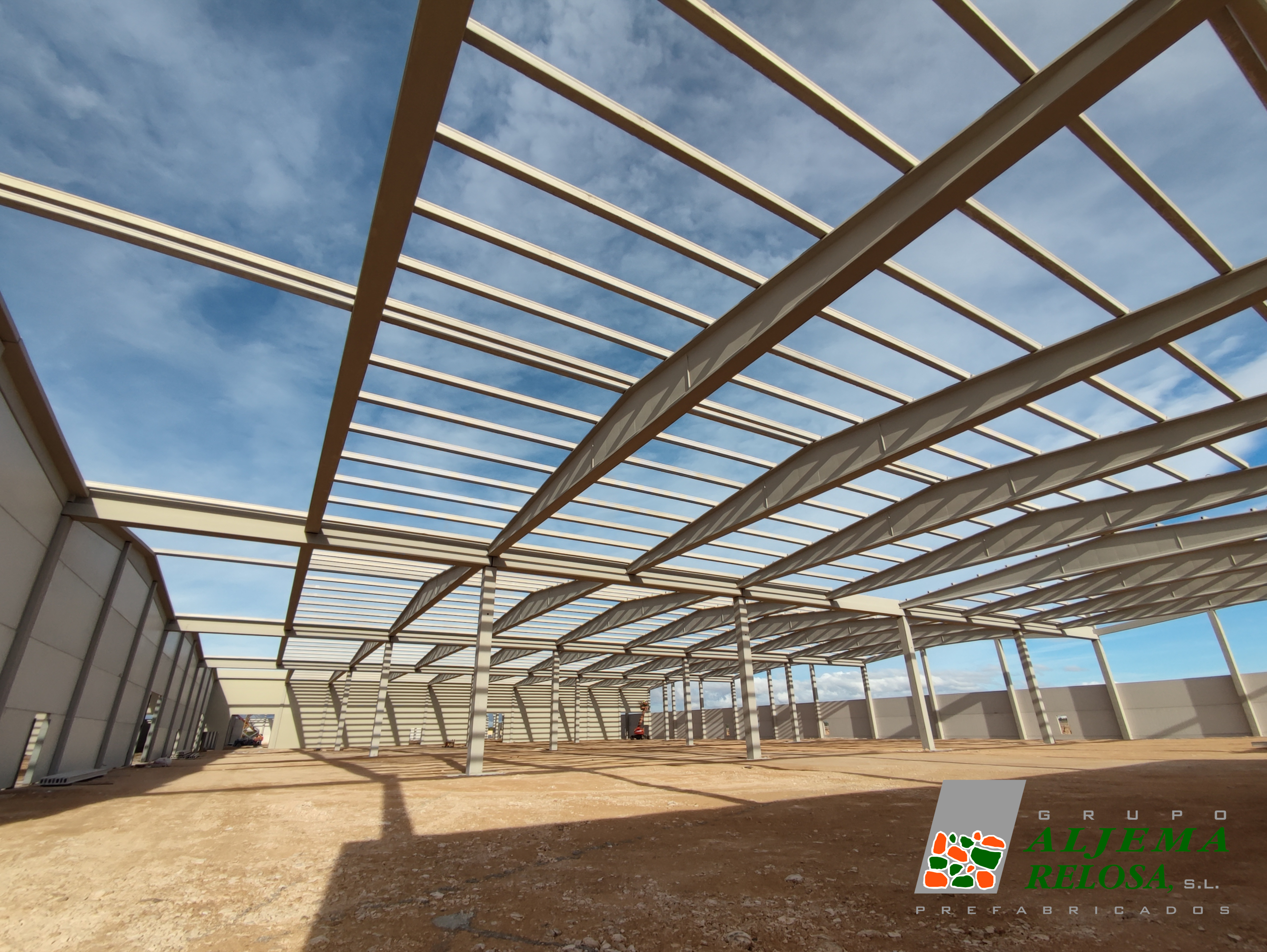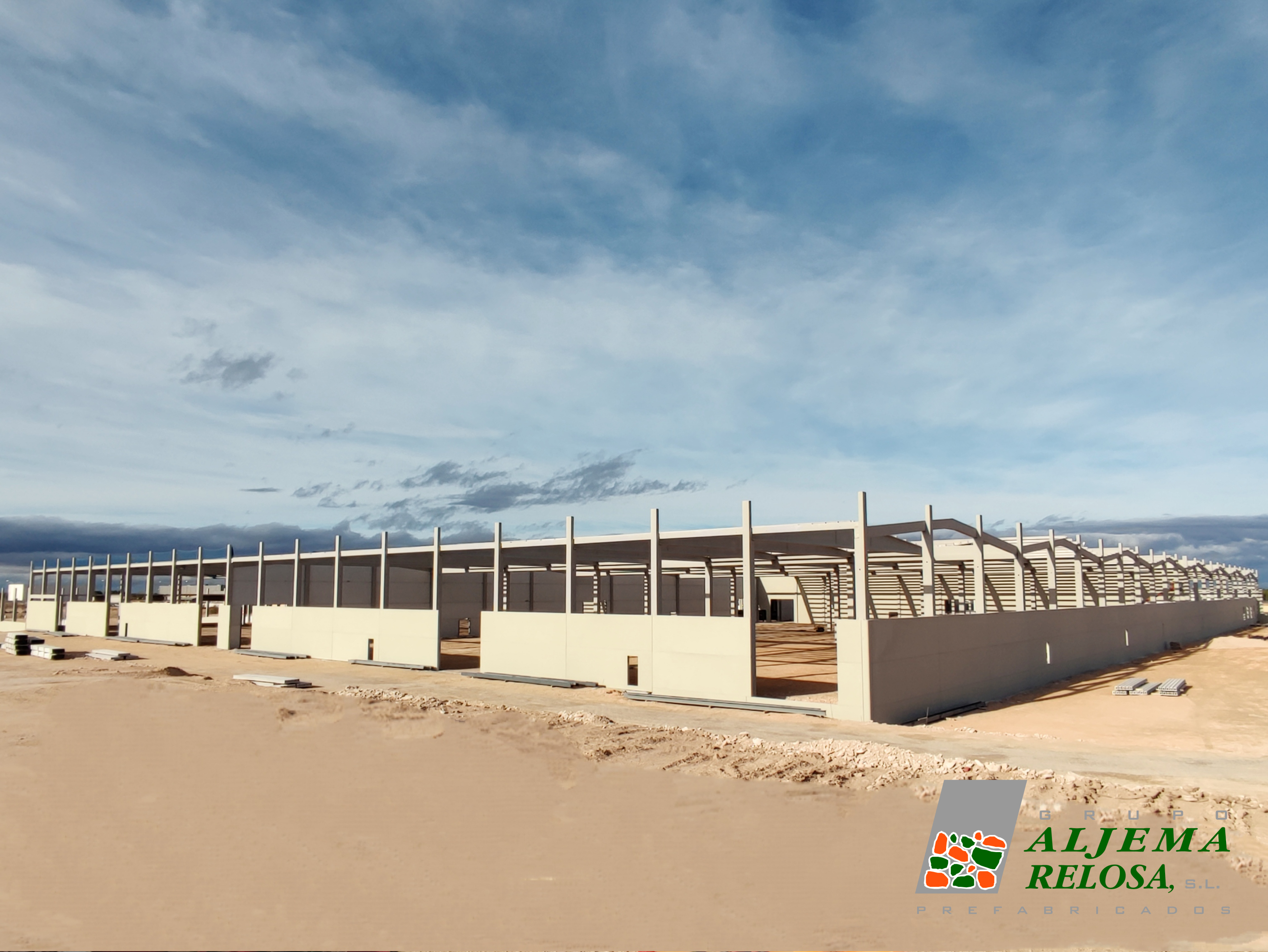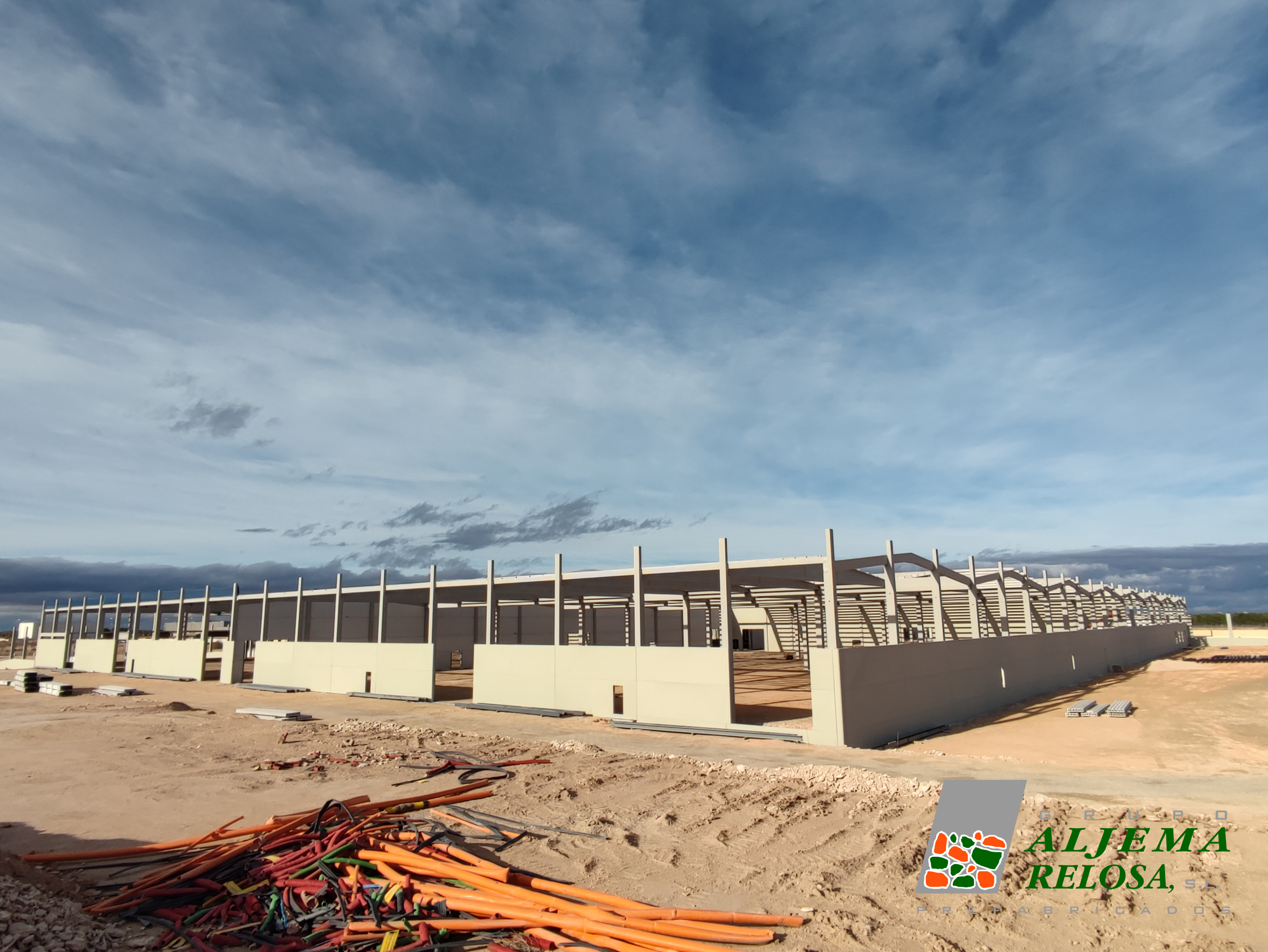 Nave de 45.900 m2 destinada a mantenimiento de aeronaves en el polígono aeronáutico de Albacete, resuelta con pilares, vigas salvapilar de 17 m., y vigas delta de 30 m., correas tubulares y forjados destinados a equipos pesados resueltos mediante placa alveolar y vigas de forjado.