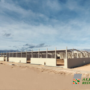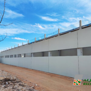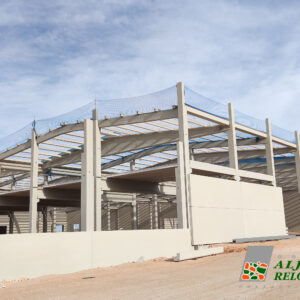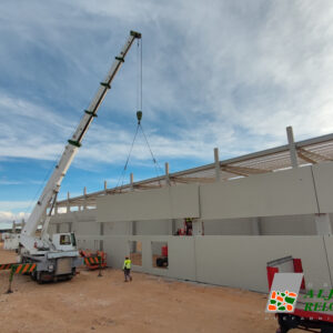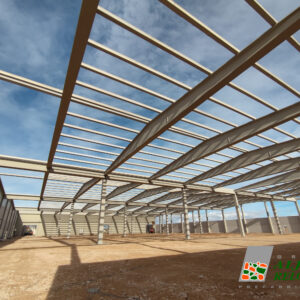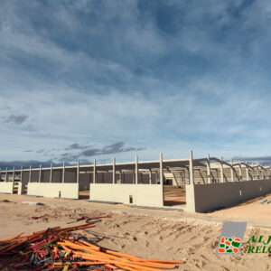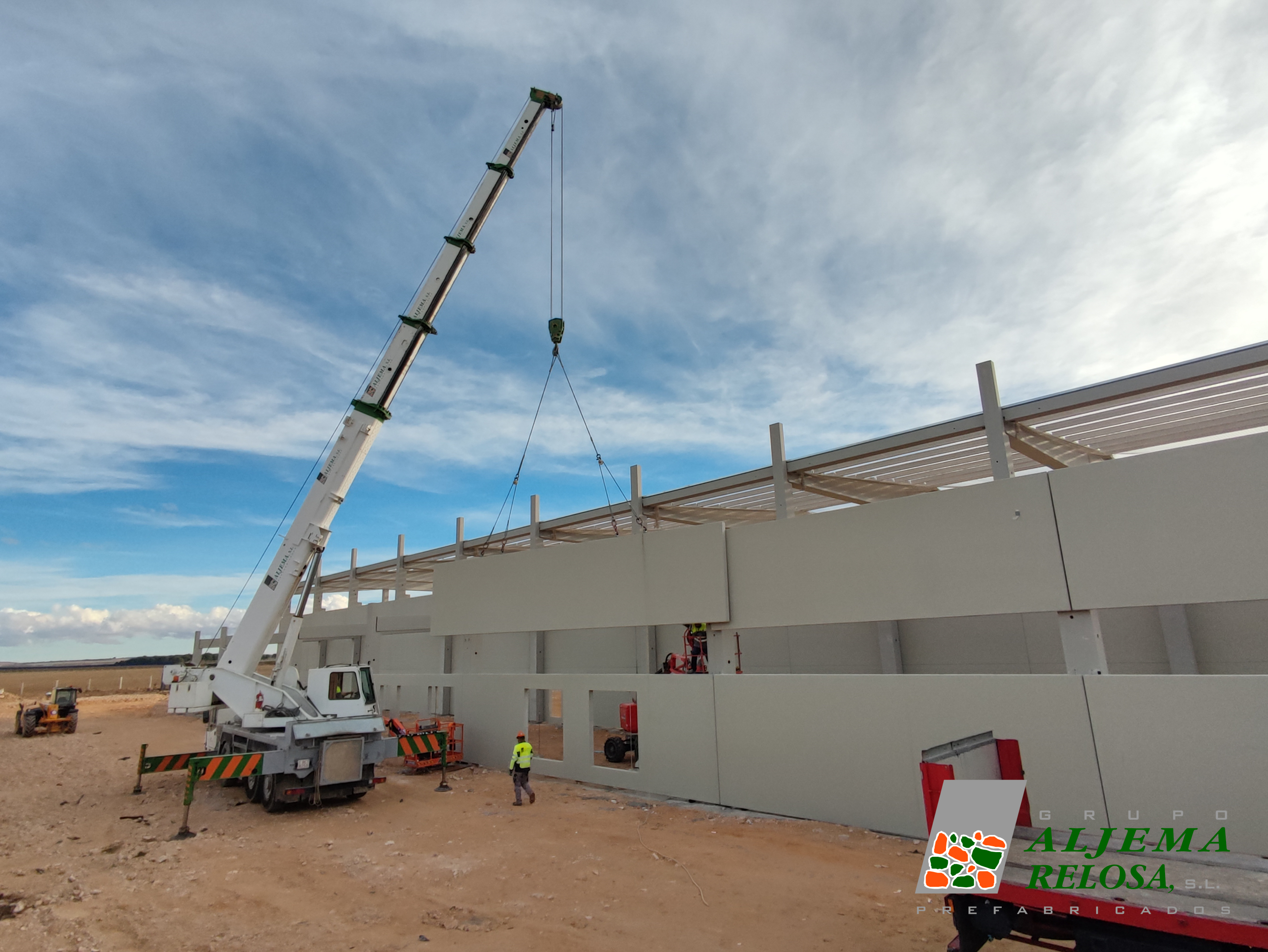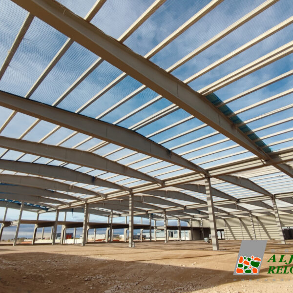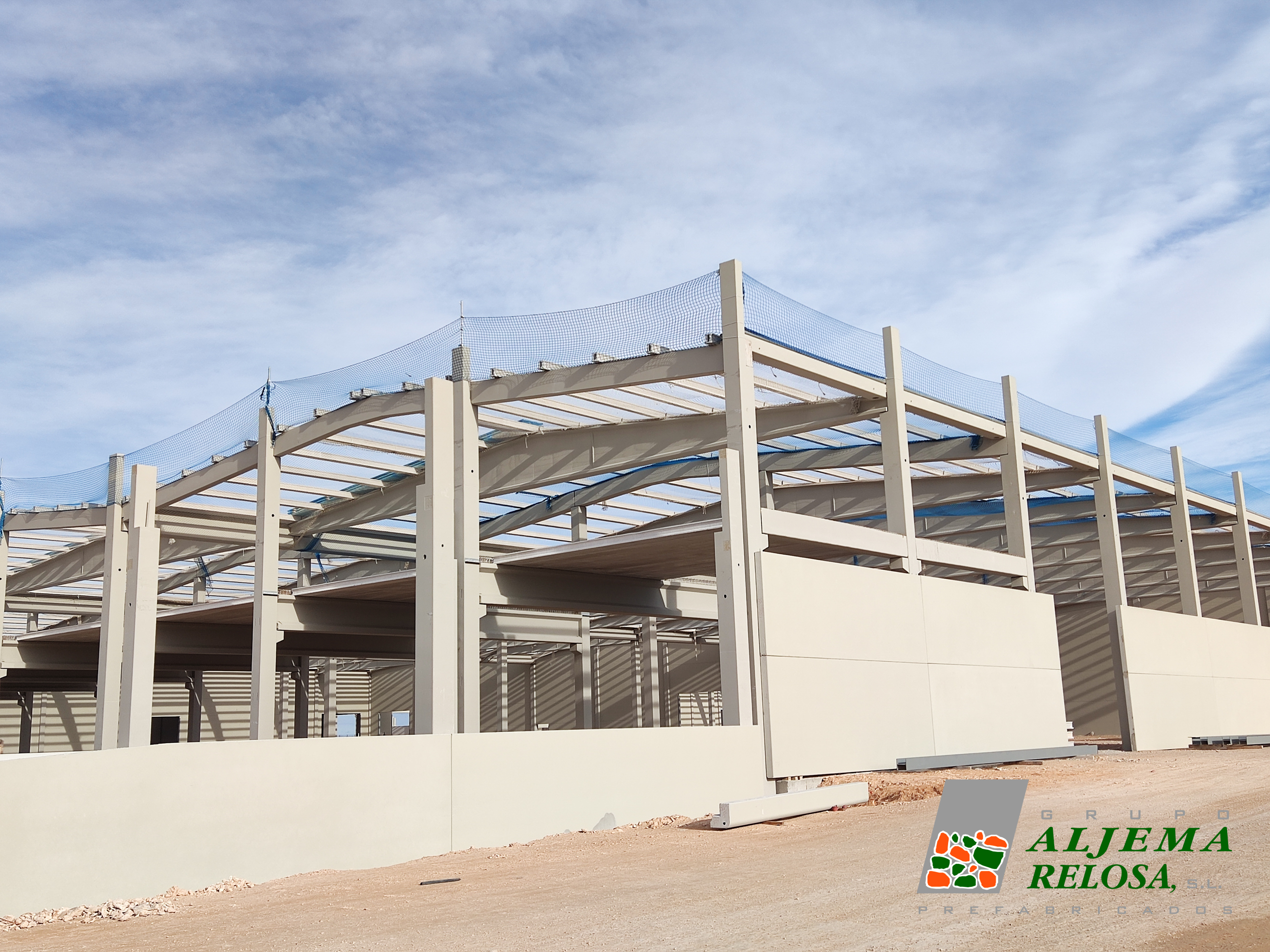 Nave de 45.900 m2 destinada a mantenimiento de aeronaves en el polígono aeronáutico de Albacete, resuelta con pilares, vigas salvapilar de 17 m., y vigas delta de 30 m., correas tubulares y forjados destinados a equipos pesados resueltos mediante placa alveolar y vigas de forjado.